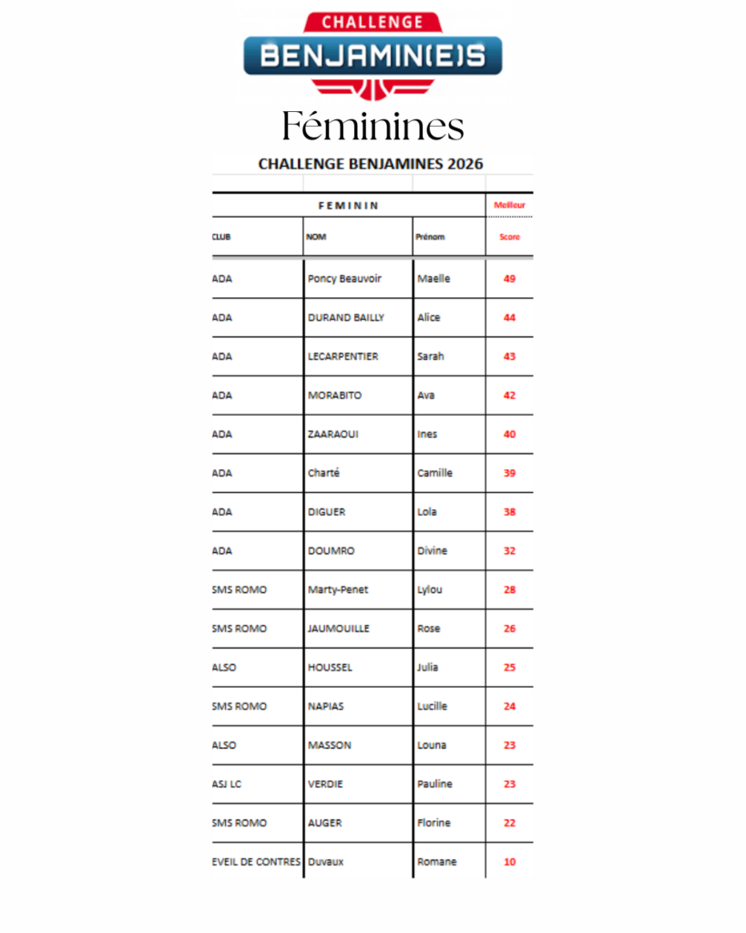 Ă lâissue de ces Ă©preuves, les meilleurs profils ont Ă©tĂ© retenus pour reprĂ©senter fiĂšrement le Loir-et-Cher lors de la phase rĂ©gionale, qui se dĂ©roulera dans le Loiret (45) le 21 ou 22 mars prochain. Une Ă©tape importante dans le parcours de ces jeunes joueuses et joueurs, rĂ©compensant leur travail et leur investissement tout au long de la saison.