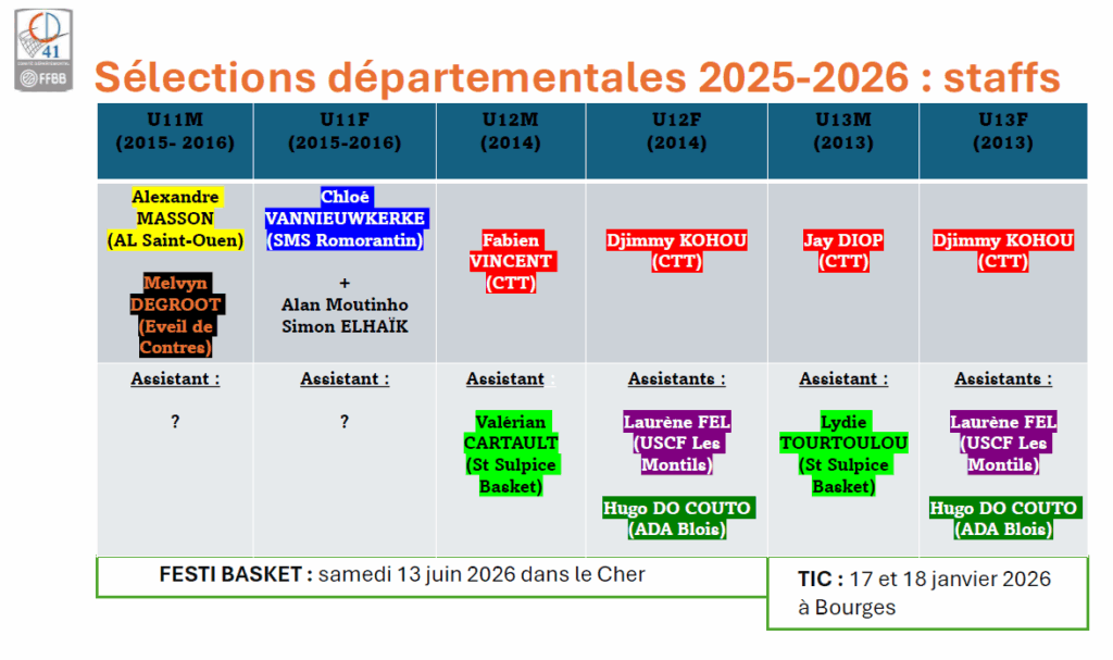Le Comité Départemental de Basketball du Loir-et-Cher organise chaque saison des sélections départementales destinées aux jeunes joueurs et joueuses les plus prometteurs du territoire.